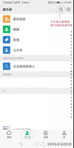 1、打开个人手机微信,点击”通讯录”顶部放大镜,搜索“澳门网投唯一官网”关注学院微信公众号,点击公众号底部“招生就业”进入“缴费大厅”: