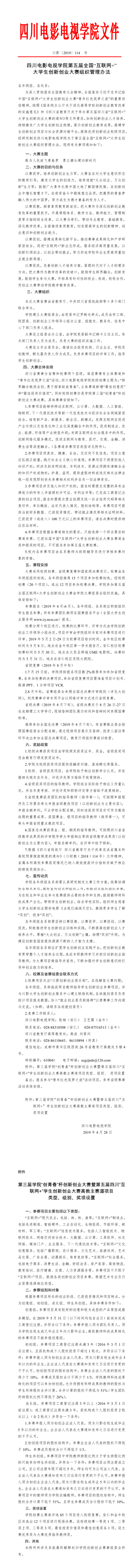 第五届全国“互联网+”大学生创新创业大赛组织管理办法