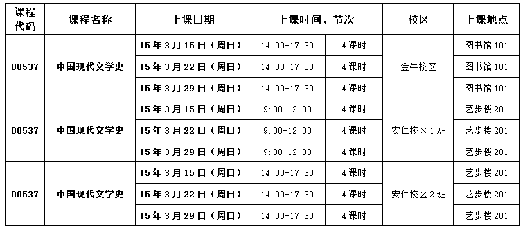 影视学院播音与主持专业自考本科2015年4月份统考课程学习安排通知