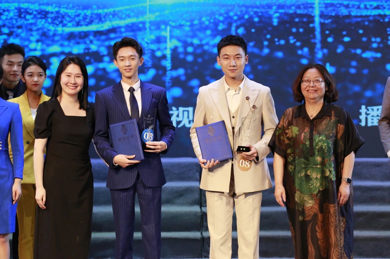 ▲播主学院副院长周欣教授、学院党委副书记曾丽萍副教授为季军颁奖