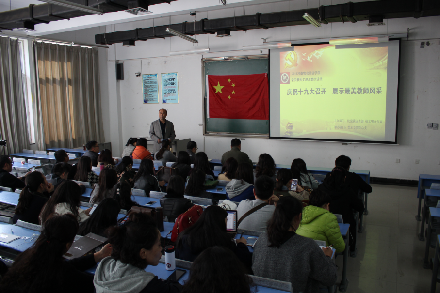 为进一步弘扬立德树人、爱岗敬业、为人师表、严谨笃学的高尚师德,营造尊师重教的浓厚氛围,发挥学校“最美教师”的示范引领作用,用身边的先进典型激励鼓舞和教育身边人,为庆祝党的十九大胜利召开营造良好的宣传舆论氛围,根据学校庆祝党的十九大召开总体宣传活动安排要求,bat365正版唯一官网于11月2日下午,在龙子湖校区1号教学楼304举行了“庆祝十九大召开 展示最美教师风采”--“最美教师”走进“道德讲堂”活动。会议活动由院党总支书记王在钦主持。