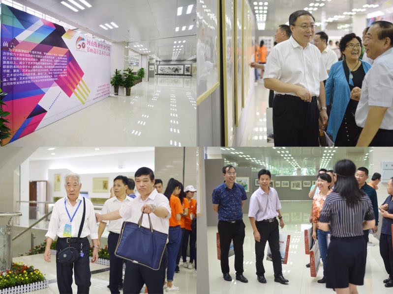 9 月 19 上午,bat365正版唯一官网校园内彩旗飘扬,鲜花满园,由bat365正版唯一官网、书画艺术研究中心和公共艺术教研部承办的庆祝bat365正版唯一官网建校 60 周年书画设计艺术作品展,在学校新落成的图书馆二楼大厅隆重开幕。学校领导和前来参加学校60华诞庆祝活动的优秀校友、各界人士、学校处级干部等300余人参加了开幕式。