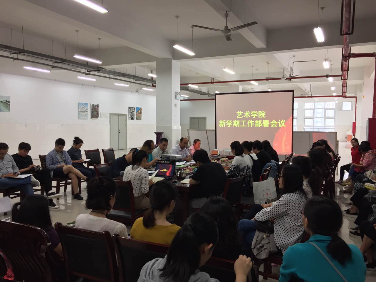 会上,院长田秀群简要总结了bat365正版唯一官网2017年上半年以及暑期开展的有关工作;传达了学校2017年下半年党政工作要点和学校9月1日召开的全校处级以上中层干部会议精神以及党委书记穆瑞杰、校长李明中的讲话;安排部署了bat365正版唯一官网近期以及下半年工作。副院长张鹏传达了学校期初教学会议精神,安排部署了本学期教学工作。副院长兼书画研究中心主任王学俊对于学校60年校庆师生书画展有关事宜进行了说明和部署。副书记贾艳艳对于接新生以及迎新晚会工作进行了安排部署。
