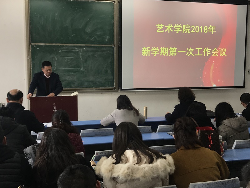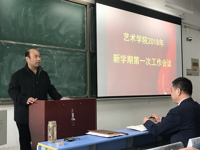 随后,副院长王学俊对科研工作提出两点要求和希望:一是要着力加强艺术学科方向的培养,把专业研究方向和人才培养相结合,希望大家积极申报科研项目;二是加强艺术类方向的科研引导,通过鼓励参加国内学术交流学习以及艺术类研讨会,增强艺术科研意识。副院长张鹏传达了学校《2017-2018年度第二学期教学工作要点》,对期初教学工作进行了详细安排,要求大家认真准备教学资料,做好上课准备。副书记贾艳艳对开学后学生报到和学生思想教育工作做了部署安排。