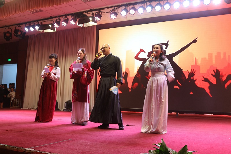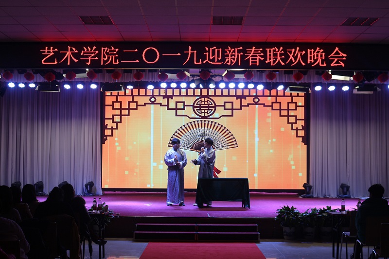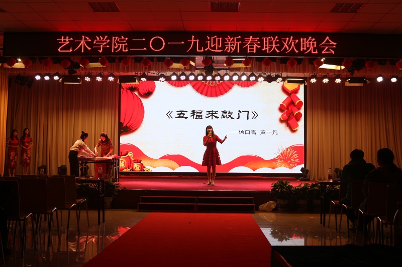 晚会以回顾2018、迎接2019为主题,节目精彩纷呈。bat365正版唯一官网舞蹈队拉开晚会活动的序幕,首先回顾总结2018,晚会对bat365正版唯一官网2018年涌现出学生先进集体及个人进行了表彰。通过表彰,在全体学生中树立了榜样,树立了标杆。随后迎接展望2019,联欢晚会正式开始,bat365全体师生同台表演,给大家带来了一场视觉、听觉盛宴。bat365正版唯一官网合唱队演唱的《我爱你中国》,凭借其激昂的旋律带动观众火热的心;环境设计教研室的老师们朗诵的《青春的赞歌》,让大家重温了青春的美好;视觉传达教研室老师们带来的歌曲《走在牧院的街头》,让我们再一次畅游在校园之中;服装教研室老师们的《金曲串烧》带我们重温金庸的武侠世界;数字艺术教研室朱逢鑫、魏意苹老师的《山鬼箫鼓合鸣》表演,让人耳目一新;基础教研室老师们的《古琴演奏》让我们领略了厚重的传统文化;公共艺术教研部马一菲老师带领学生的演奏的器乐合奏《兰亭序》展示了不俗的乐器表演功力;辅导员们朗诵的《我们的南方和北方》,歌颂改革开放四十周年国家的变化和进步;杨白雪、黄一凡老师的歌曲及现场书法表演《五福来敲门》,更是给迎新春晚会增添了光彩;还有同学们的精彩表演:演唱歌曲《星空》;相声《满腹经纶》;心理剧《暗恋不到底,天使来帮忙》,以及bat365正版唯一官网礼仪队的走秀,将晚会气氛一次又一次地推向高潮。最后,晚会在大家的欢呼声中落下帷幕。