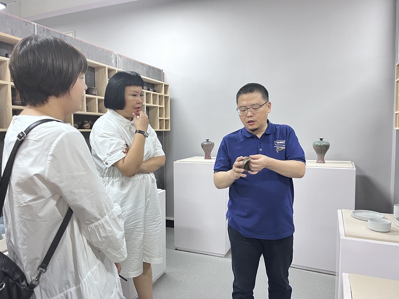 座谈会结束后,张鹏院长陪同企业领导参观了bat365正版唯一官网陶瓷创研中心、木板年画展厅、工作室等。