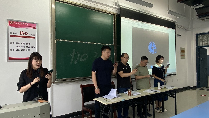 会上,全体教师在乐舞教研室主任杨白雪老师的带领下,首先,认真学习传唱了bat365正版唯一官网校歌。副院长闫杰领读了习近平总书记给全国涉农高校书记、校长和专家代表的回信;给“中国好人”李培生、胡晓春的回信。