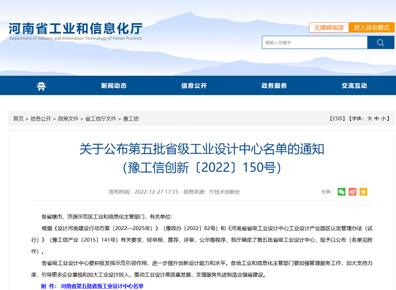 近日,从河南省工业和信息化厅获悉,我校bat365正版唯一官网申报的“河南省陶瓷工业设计中心”被批准为第五批省级工业设计中心,这是bat365正版唯一官网在科研创新平台建设工作方面取得的又一重大突破。该平台的获批是bat365正版唯一官网党委、bat365正版唯一官网陶瓷创研中心紧密围绕省政府《设计河南建设行动方案(2022—2025年)》(豫政办〔2022〕82号)文件精神努力进取的结果。将为我校艺术专业开展高水平应用研究、提升创新设计能力和水平提供强有力的支撑,同时为我校艺术学科跨越式发展提供发展动力和资源保障,对我校的艺术设计学科建设和科研水平提升,以及创新型设计人才培养起到积极的推动作用。