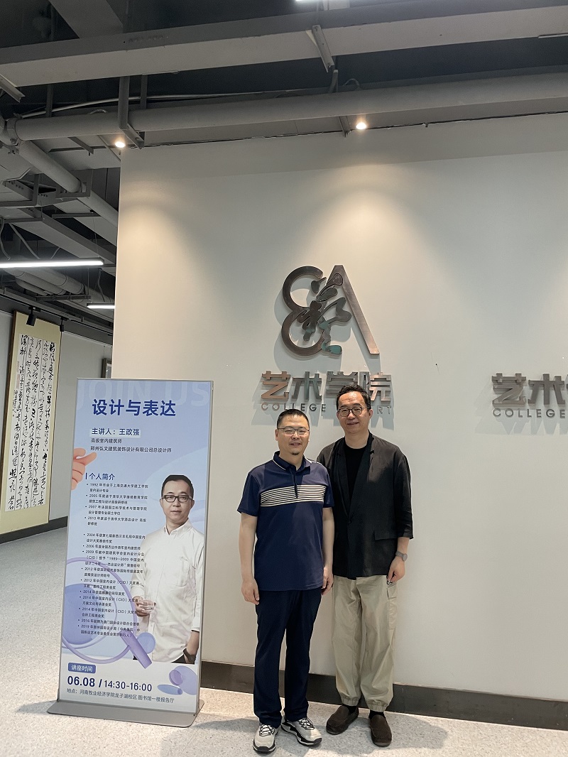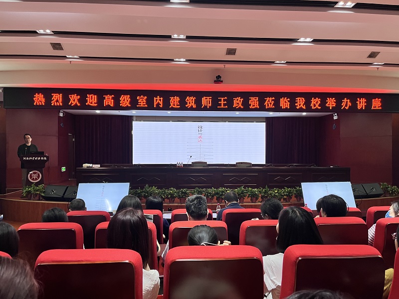2023年6月8日下午,bat365正版唯一官网邀请高级室内建筑师、郑州弘文建筑装饰设计有限公司总设计师王政强先生在龙子湖校区图书馆一楼报告厅举办了“设计与表达”专业讲座。讲座由张鹏院长主持,全体教师和部分学生代表聆听了讲座。