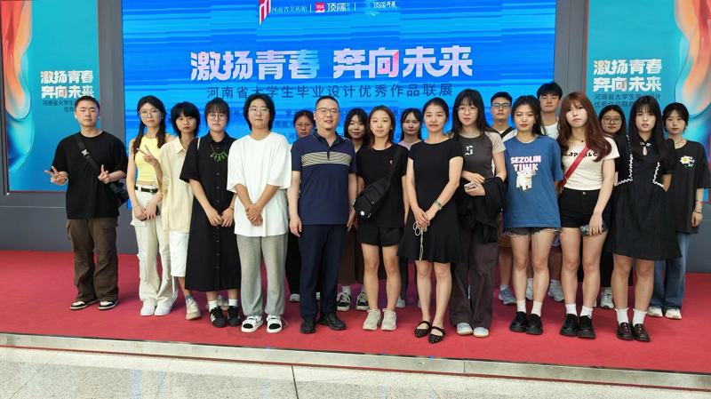 6月15日,激扬青春,奔向未来——河南省大学生毕业设计优秀作品联展在河南省美术馆举行开幕式。此次联展由河南省美术馆、河南日报社顶端新闻主办,来自全省近30所高校艺术设计学院的千余件优秀作品在此汇聚,为观众献上一份“设计河南”的青春答卷。bat365院长张鹏、视觉传达设计教研室主任李好敏以及学生代表参加了本次开幕式。