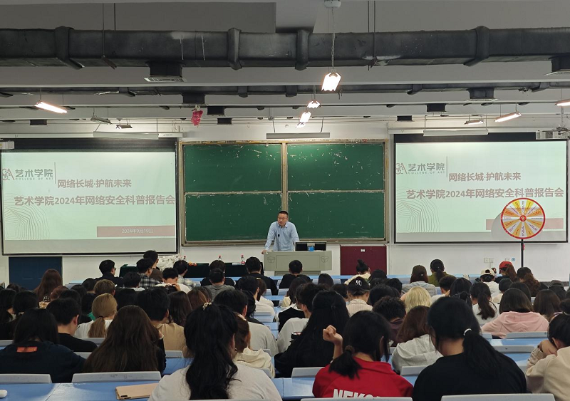 会议伊始,刘显首先针对网络安全的重要性做了科普。随后,由郑州市高新区网络安全科技馆展教部一级讲解员王曼为广大学生进行了具体的介绍与讲解。她从网络的诞生讲起,指出数字化带来美好生活的同时带来的安全问题,引出“作为大学生,我们能做什么呢?”“捍卫国家网络安全,我们还能做什么?”这些问题。接着,她通过16条网络诈骗手段和网络安全意识提升的四步策略引导大家如何学会防范网络诈骗,并通过计算机的使用、正确使用U盘和数据的删除与恢复三种方式帮助大家掌握网络安全的实用技能。然后,她详细讲述了国家安全教育典型案例,引导大家严格做到“五不能”,共同保守国家秘密,维护国家安全。报告会结束后,王曼通过游戏和飞镖答题的方式与同学们进行互动,号召大家在未来的生活中捍卫网络空间公平正义、提升网络法治意识和素养。