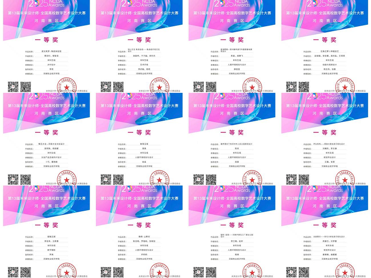 本届大赛竞争异常激烈,共吸引全国1893所高校参赛,征集作品总数超过29万件,设有29个省级赛区。在河南赛区的比赛中,bat365正版唯一官网师生展现出强劲实力,荣获一等奖12项、二等奖18项、三等奖22项的优异成绩。同时,艺术学院因组织工作出色荣获“优秀组织奖”,杨志伟老师获评“优秀组织教师”,另有多名指导教师被授予“优秀指导教师”称号。