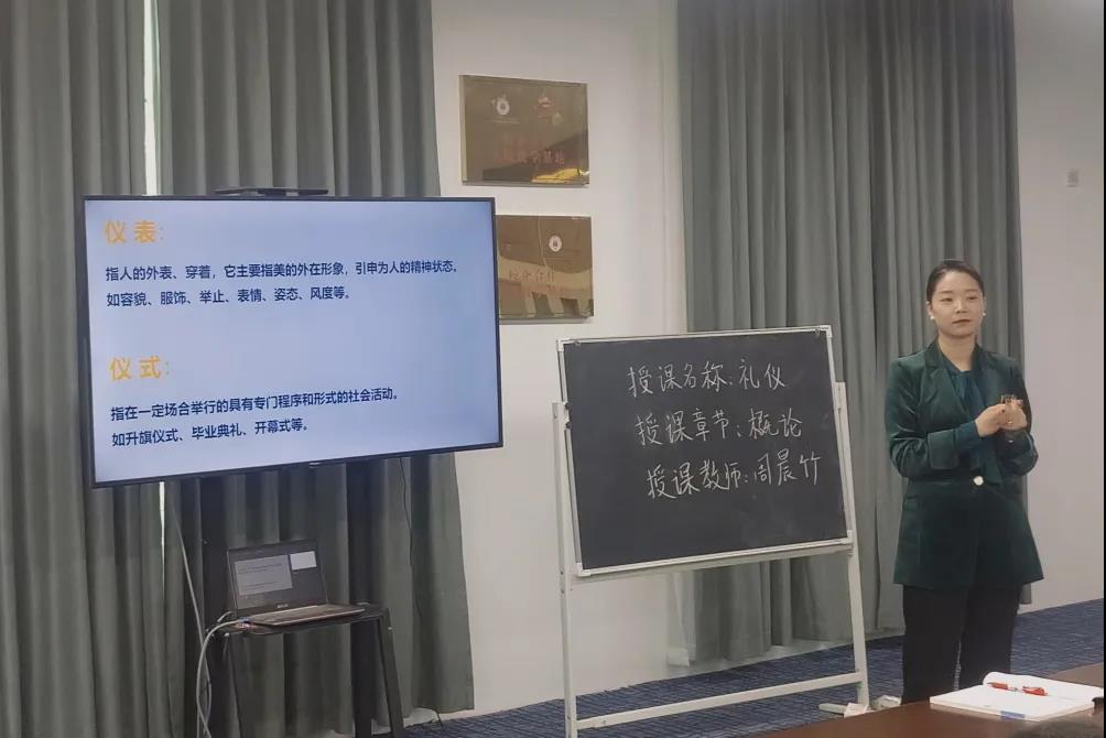 第一位上场的教师是空乘教研室的周晨竹老师。她从所教授的课程礼仪出发,讲到,“礼仪是让我们成为有修养、有品味、有风度、有气质、懂得爱己爱人的现代人。”