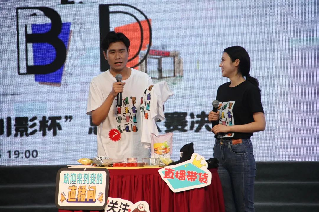 在本轮比拼中,选手们将与嘉宾现场搭档完成模拟直播带货。选手们依次抽取带货产品,包括川影30周年校庆纪念卫衣、大邑县唐桥豆腐乳、思维大赛纪念T恤等特色产品。比赛中选手们热情洋溢,与嘉宾配合默契,将现场的气氛推向高潮。第二环节选手的最终得分由综合评委打分与直播搭档专属积分组成,最终共有6人进入第三环节。