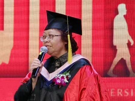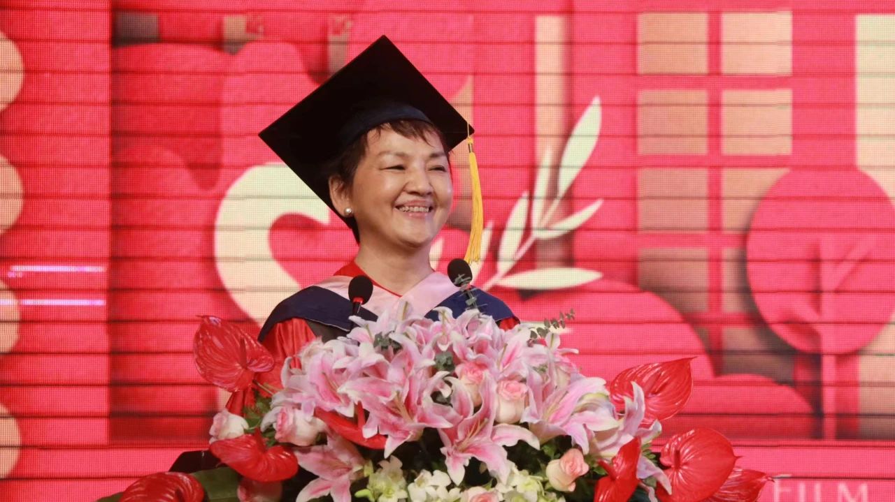 播主学院党委书记、副院长李丹教授回顾了和同学们相处四年的快乐时光,她说:“很开心和同学们一起度过快乐的四年,以前上课问过大家,到底是过程重要还是结果重要。无论大家的答案是什么,都希望大家去认真体验,希望同学们在未来能做到话不多、事不拖、言必行、行必果。”