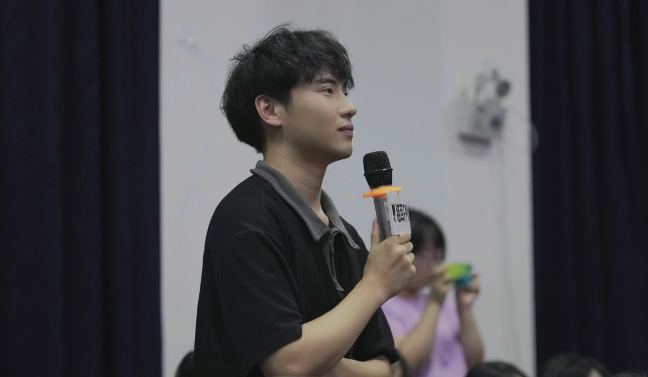 休息期间,同学们高喊自己最爱的配音角色:叶修、魏无羡、萧逸、顾昀……阿杰老师也在现场为同学们一一进行精彩的声音展示。