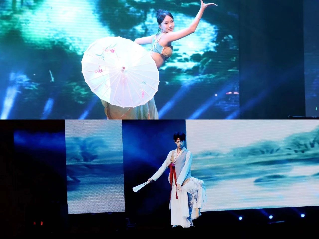 ▲晚会主持人:23播1班黄宏亮、23播2班李炳妍