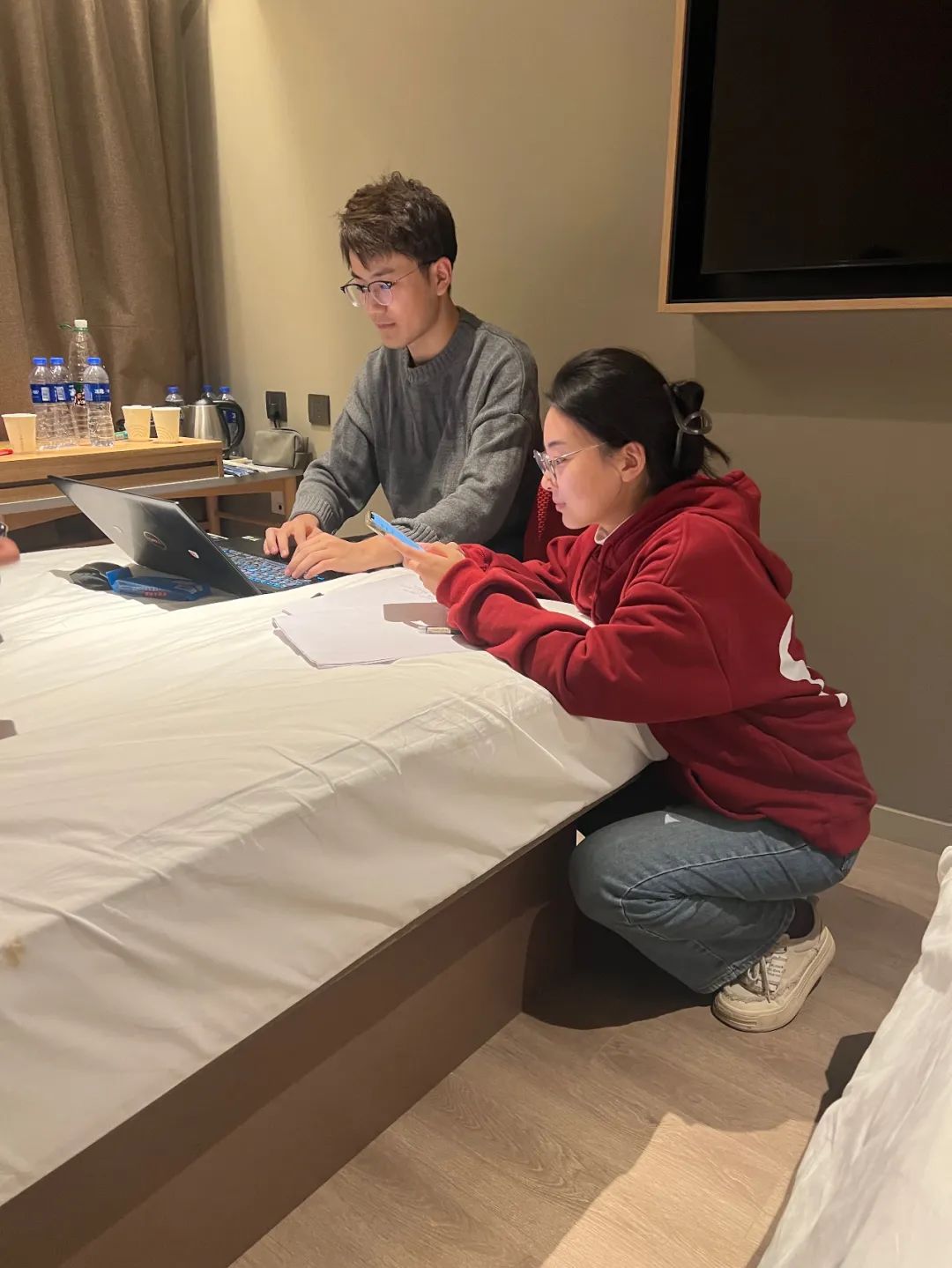 ▲11月10日,一下飞机到达北京,叶轶凡、路萍老师就开始带同学们进行排练