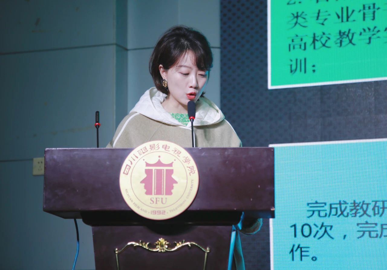 ▲播音教研室主任刘莹进行述职总结