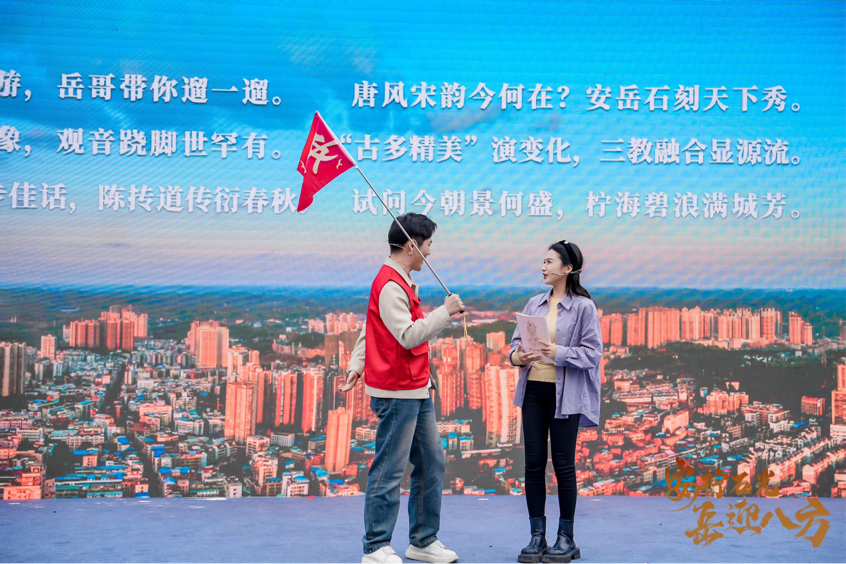 为了让珍贵的文化遗产“活起来”,此次安岳石刻文化艺术季面向公众开展了线上线下活动,邀请更多群众了解安岳、走进安岳。线下活动以微情景剧等方式,推介、展示安岳石刻的独特资源和价值,带领观众一同聆听唐宋石刻的风声、感受普州古城的气韵。