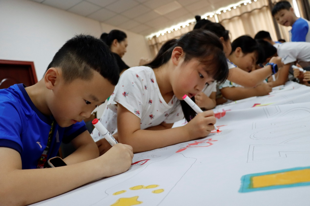 7月16日,志愿者们在回龙湾社区为小朋友们开展了一场“建党一百年彩绘活动”,并在活动中推广普通话。活动最后志愿者们还带领小朋友们共同完成了“建党百年彩绘作品”的制作。