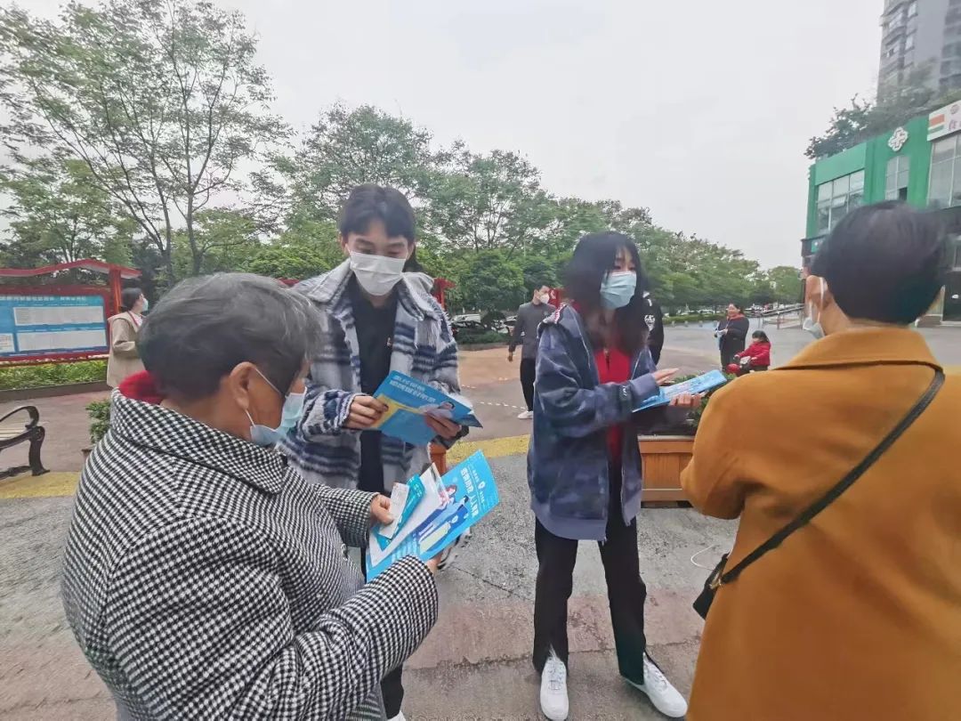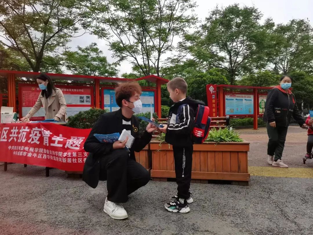同学们在社区附近为居民们发放防疫用品,并讲解和解答关于防疫的相关小知识,希望为防疫工作贡献出自己的一份微薄之力。