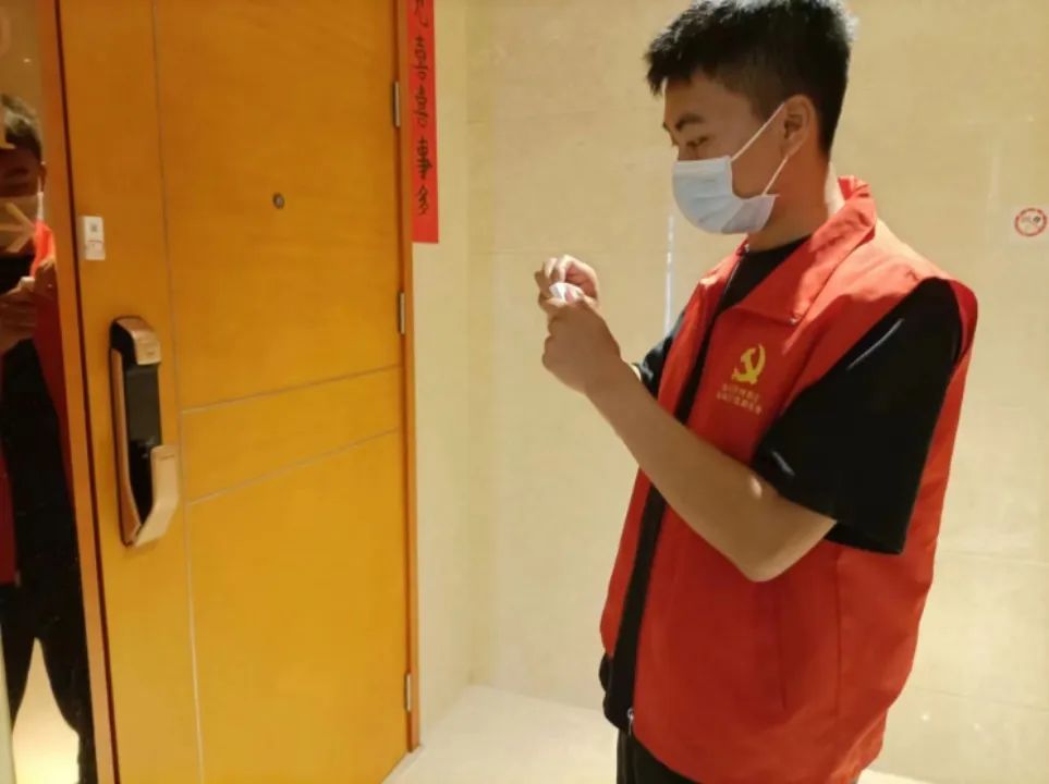 今年4月,由于返蓉人数较多,身为一名预备党员,在这期间我积极投身于社区志愿者服务工作,负责疫情期间居家隔离住户的核查、安装门磁警报器、提醒住户居家隔离期间禁止出门等工作。