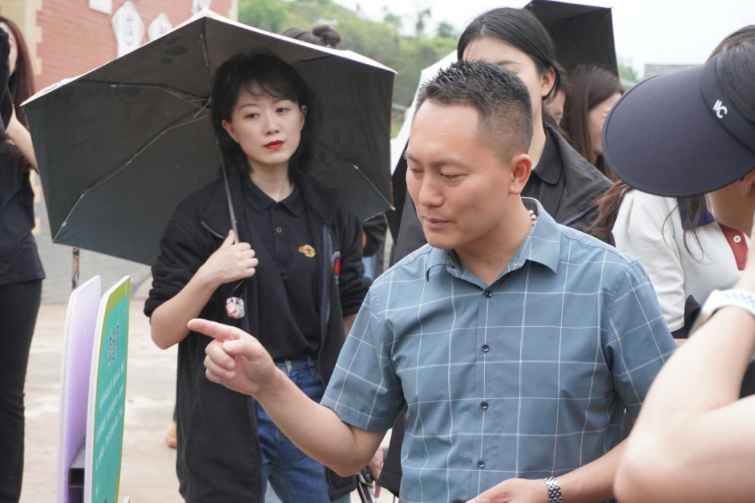 播主学院党委牢牢把握“学思想、强党性、重实践、建新功”的总体要求,坚持“学思用贯通,在社会实践中强化习近平主席的先进思想”。2023年4月21日清晨七点,党员师生队伍一行深入落实校地校政合作,以“知信行统一”为指导思想,大家冒雨前往眉山市万年村经济产业园进行实地考察与创作,以宣传万年村为目的展开与专业实践相关的室外拍摄训练。