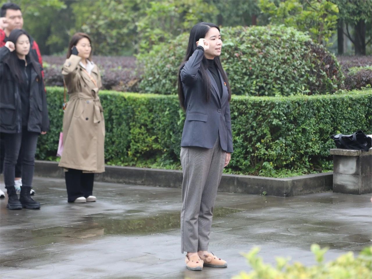 上午九点,全体师生党员在陈毅元帅铜像下唱响《没有共产党就没有新中国》。随后,在播主学院党委副书记、纪委书记曾丽萍副教授的领诵下,全体党员右手握拳面向党旗,重温入党誓词,激励自己牢记入党的初心和使命,永葆共产党员的青春活力和政治本色。