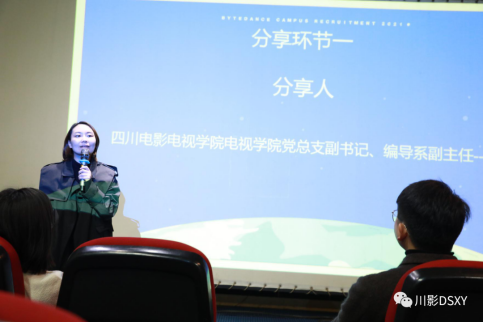 本次启动会分为分享环节与自我介绍环节,电视学院党总支副书记、编导系副主任段晓冉老师,今日头条四川分公司创意总监贺明,高校联盟实践创新内容中心负责人胡潇月,高校联盟实践创新内容中心执行主席姜珺瑶分别做出分享。