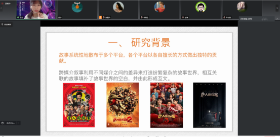此外,电视学院青年教师苏丹在第十四届中国影视高层论坛“影视叙事艺术分论坛”进行发言。根据分论坛发言题目“华语电影系列化发展视域下的跨媒介叙事研究”,苏丹老师从华语电影的跨媒介叙事路径的两种方式,列举热门华语电影《唐人街探案3》《哪吒之魔童降世》《新神榜:哪吒重生》,对华语电影的跨媒介现象进行了系统梳理和分析。