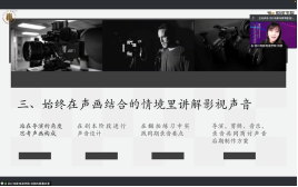 刘丽副院长从编导专业与录音专业学生在专业特点和影视声音课程教学目标的不同谈起,介绍了编导专业学生需要掌握的影视声音知识和如何针对编导专业特点设计影视声音教学板块,分享了使学生在有限的课程时间内分阶段高效掌握影视声音创作思维与技巧的具体做法,并强调需要把视听思维贯穿课程始终、声音设计的观念需前置到剧本围读阶段。