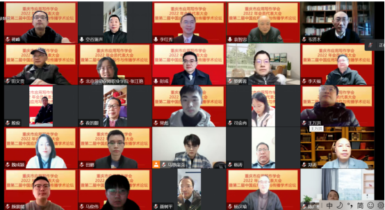 2023年1月7日,由重庆市应用写作学会主办的“重庆市应用写作学会2022年会员代表大会暨第二届中国应用写作与传播学术论坛”在云端隆重举行,来自湖北、河南、北京、四川、贵州、山东、广西、黑龙江、内蒙古以及重庆本土等全国各省市的众多高校专家与学者共赴此次盛会。澳门网投唯一官网电视学院蒋峰副教授受邀参加本次会议,并担任第一分论坛点评嘉宾。