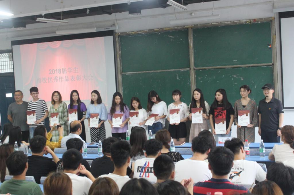 2018年6月12号下午14:30,bat365正版唯一官网在龙子湖校区一号教学楼合300举行2018届学生留校优秀作品表彰大会。bat365正版唯一官网党总支书记王在钦、副院长张鹏、党总支副书记贾艳艳、各教研室主任、全体行政老师、各辅导员老师及各年级学生代表参加了此次会议。
