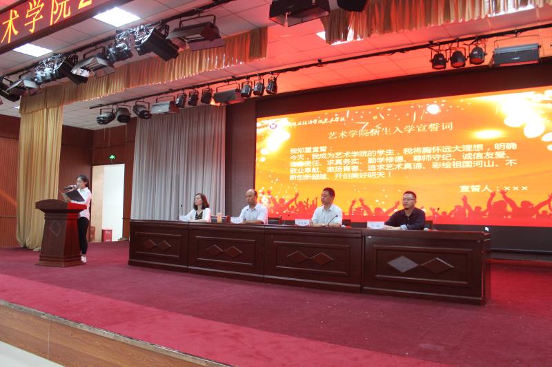 大会第三项由教师代表园林教研室左金淼老师发言,他从二十四年前自己入学经历讲起,又结合二十多年的教学经验,勉励2018级新生在校期间,珍惜时光,珍惜身边的同学,珍惜自己。接下来是由16级环设二班王曼同学代表老生上台发言,她与18级新生分享自己的大学生活和对大学生活的感悟。大会第五项由新生代表18级园林一班田振平同学上台发言,表达了自己对大学未来生活的期待,也代表全体新生做出承诺,要在大学中学会做人、学好知识、学会做事。在开学典礼的最后,所有新生一起做了入学宣誓,由17级环设二班张雯迪领誓,表达了大家对未来大学学习生活的信心和信念。