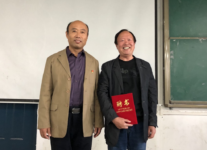 bat365正版唯一官网党委书记王在钦向郑泰森先生颁发客座教授聘书。
