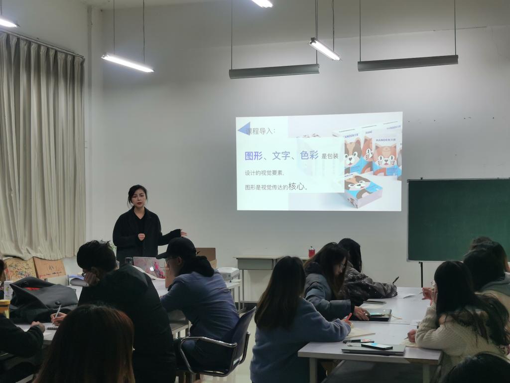 张博文老师讲授的是《包装装潢设计》课程。张博文老师的授课特色鲜明,讲授内容框架清晰,重点突出;讲解知识点时环环相扣,游刃有余地将前后内容巧妙联系;整节课内容丰富、条理清楚、丝丝入扣,显示出了扎实的理论水平,同时接地气的语言、深入浅出地讲解让学生对原本抽象晦涩的理论轻松掌握。
