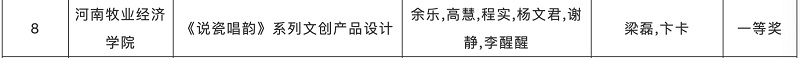 在接到大赛通知后bat365正版唯一官网积极响应,组织学生组建团队参赛,视觉传达设计专业文创团队顺利立项,与宝丰县政府合作开发“《说瓷唱韵》宝丰非遗系列文创设计”,比赛过程中多次与宝丰县政府沟通交流,实地走访调研,了解实际需求,设计方案也到宝丰县政府和组委会的肯定,中期作品受邀多次参加各类路演和展览并顺利进入决赛最终获得“黄河之礼”非遗文创设计赛道一等奖。
