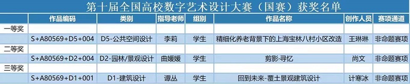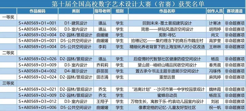 近日,第十届全国高校数字艺术设计大赛(未来设计师NCDA大赛)获奖名单公布,我校bat365正版唯一官网环境设计专业师生在此次大赛中经过多轮角逐,表现优异,喜获佳绩。参赛作品共获得16项大奖,其中国家级一等奖1项、二等奖1项、三等奖1项;省级一等奖5项、二等奖4项、三等奖4项。