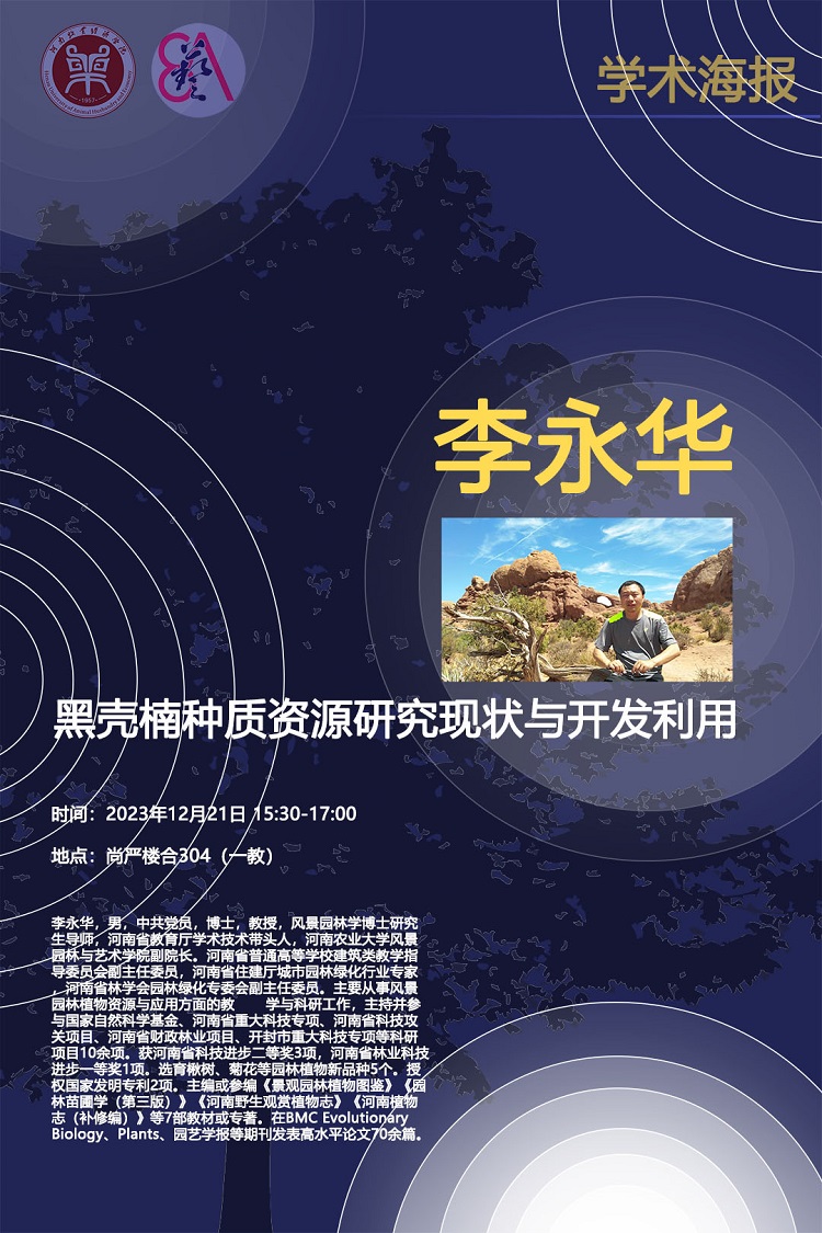 2023年12月21日下午,河南农业大学风景园林与bat365正版唯一官网副院长、博士研究生导师、河南省教育厅学术技术带头人、河南普通高校建筑类教学指导委员会副主任委员李永华教授在龙子湖校区1号教学楼合304教室一场题为“黑壳楠种质资源研究现状与开发利用”的学术报告。报告由bat365正版唯一官网院长张鹏主持,全体教师及园林专业全体学生参加。