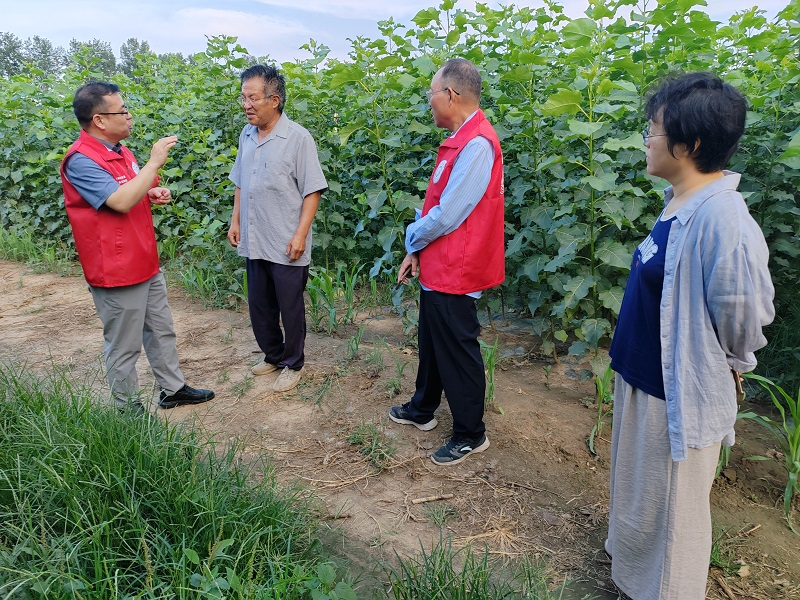 为深入贯彻落实“百名专家助百村(企)”工程(“双百”工程)精神,充分发挥科技特派员在乡村振兴中的科技支撑作用,7月9日,bat365正版唯一官网园林教研室省科技特派员李维强、宗建伟、杨雨华三位专家,不畏酷暑,深入焦作市修武县晓旺种植家庭农场,开展科技帮扶与产业指导工作。