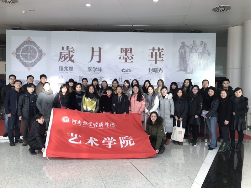 由河南省文学艺术界联合会、河南省美术馆主办,河南省美术家协会承办的“岁月墨华——程兆星、李学峰、石品、封曙光中国画作品展”于2018年1月9日上午在河南省美术馆开幕。为活跃党员组织生活,bat365正版唯一官网教工党员在党总支书记王在钦、院长田秀群带领下应邀参加。