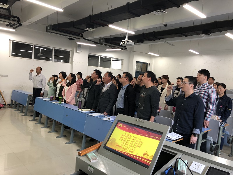 活动在大家集中观看学习习近平总书记在纪念五四运动100周年大会上的讲话视频中开始,接着学院纪检委员张鹏带领大家认真学习了校纪委印发的《以案促改警示教育材料》,通过身边违法违纪案件警示广大党员把牢思想总开关,严守国法党纪;活动专门邀请了院长田秀群同志为大家做了题为《坚持党政联席会议制度 营造风清气正工作环境》的主题课,结合bat365正版唯一官网工作实际,结合各岗位的具体工作,深入剖析了廉政风险点,提出了明确而具体的要求,进一步加强了廉政教育;最后王在钦带领全体党员庄严地重温了入党誓词。
