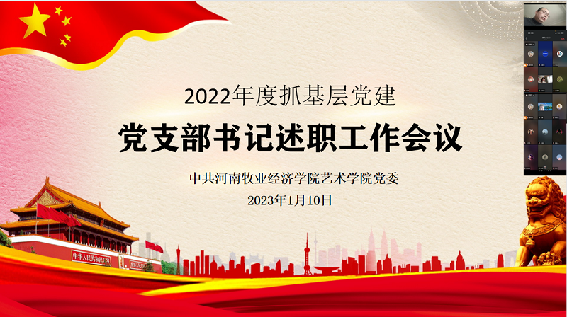 为深入学习贯彻习近平新时代中国特色社会主义思想和党的二十大精神,着力发挥党支部战斗堡垒和党员先锋模范作用,落实基层党建工作责任,bat365正版唯一官网党委1月10上午在腾讯会议平台上召开了2022年度基层党支部书记述党建工作述职测评会,学院各支部书记及全体党员老师参加会议。会议由学院党委书记王国辉主持。