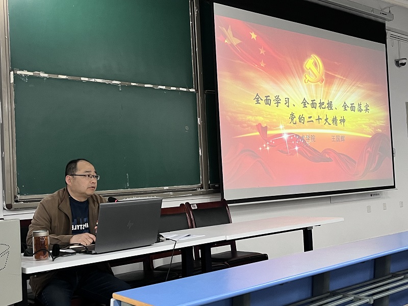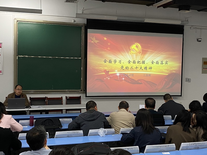 为贯彻落实好党的二十大重大决策部署,4月13日下午,bat365正版唯一官网党委书记王国辉在1号楼304为学院全体教职工作题为“全面学习、全面把握、全面落实党的二十大精神”专题辅导讲座,学院全体教职工参加。