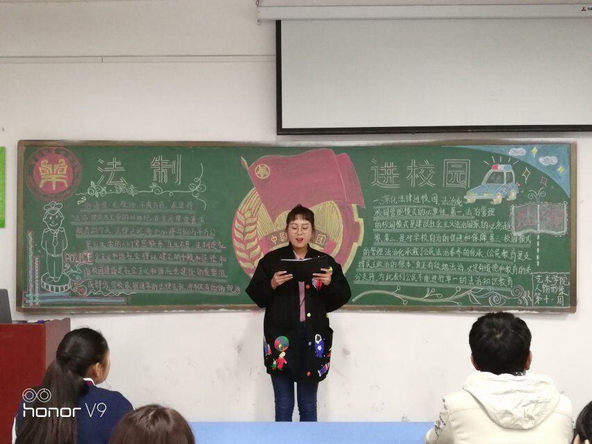 2017年11月16日下午,艺术学院在龙子湖校区二号教学楼举行了以“法制宣传进校园”为主题的团课,本次团课由大一全体班级参加。并抽出环境设计三班、视觉传达一班在龙子湖校区足球场首次展开户外团课,同学们以讨论的形式展开,同学们无畏寒风,从开始到结束,精神饱满,积极发言,户外团课开展得非常成功!