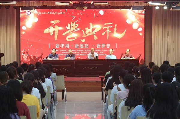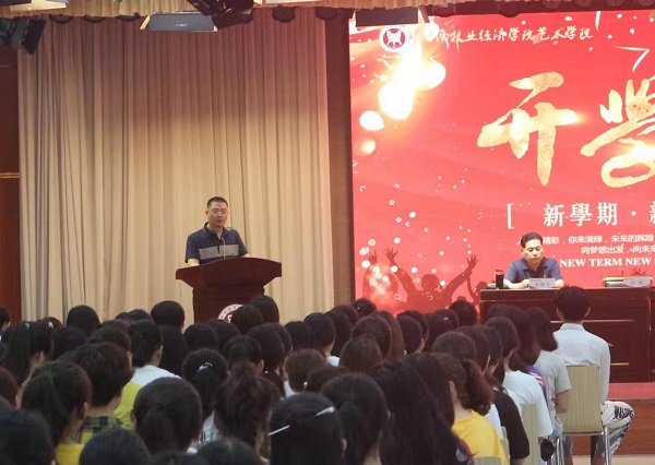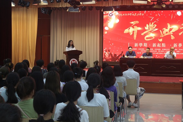 2019年9月10日中午,bat365正版唯一官网在龙子湖校区大学生活动中心隆重举行2019级新生开学典礼。出席开学典礼的有学院党委书记王在钦,院长张鹏,正处级组织员许国平、杨柳青,副书记贾艳艳及bat365正版唯一官网各教研室教师代表和辅导员老师,典礼由副书记贾艳艳主持。