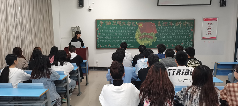 2021年4月22日下午,bat365正版唯一官网bat365正版唯一官网在龙子湖校区二号教学楼举行了以“争做文明大学生,喜迎本科评估”为主题的团课。本次班会由大一新生全体班级参加。
