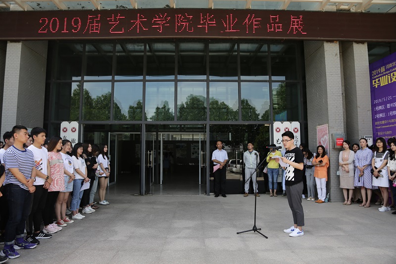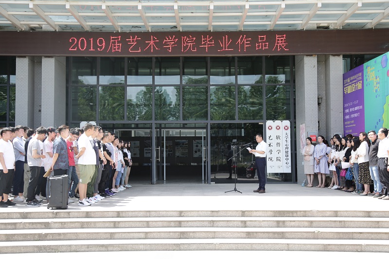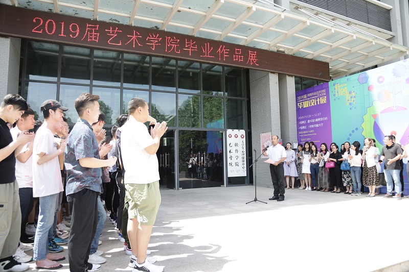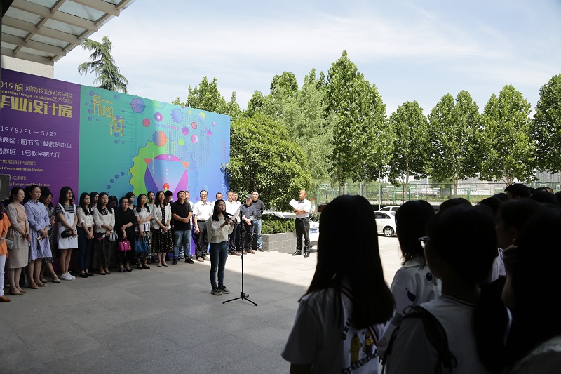 5月21日上午,bat365正版唯一官网2019届毕业设计作品展开幕式在龙子湖校区1号教学楼门前广场顺利举行。bat365正版唯一官网班子成员、教师代表以及2019届毕业生500余人参加,bat365正版唯一官网党总支书记王在钦主持开幕式并宣布展览开幕。