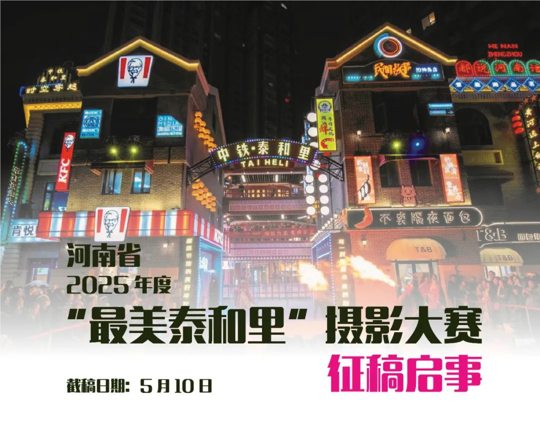 中铁·泰和里位于郑州市火车站西广场周边,通过一轴、四街区、六大主题的沉浸式街景,结合不同时代中原文化的情景演艺,打造了河南首个沉浸式文商旅夜经济场,获评“河南省省级旅游休闲街区”,是郑州市政府的“城市会客厅”和“形象展示厅”。为了更好地提升中铁·泰和里知名度和美誉度,弘扬中原文化,打造文化品牌,特此举办“最美泰和里”主题摄影大赛。本次活动将面向全省广大摄影家、摄影爱好者和广大群众开放,诚邀各位摄影爱好者用镜头记录泰和里的精彩瞬间,展现中铁·泰和里主题街区的独特魅力和风采。旨在号召广大青年,通过影像艺术,讲好河南故事,彰显时代精神,助力河南文化强省建设,推动文旅融合高质量发展。